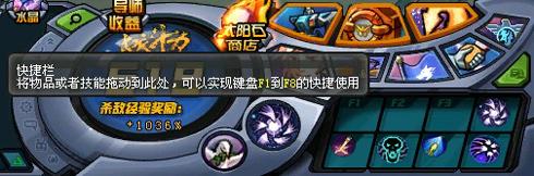 这就出现了特殊技能的界面,也就是核心带的技能.我们可以用鼠标移到这个图标上,然后按住鼠标左键,把这个图标拖到快捷栏上,如下图: