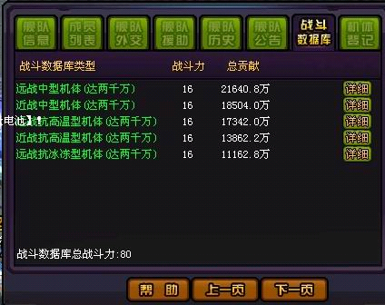 而一个舰队想要强大,就需要大量的舰队成员进行机体登记,这样才能提升战斗数据库中各种机体最高的战斗力贡献度,当所有机体都满足最高要求后,战斗数据库总战斗力将会达到80点!这个时候那怕你只是个普通舰队成员都将额外获得8点的战斗力!