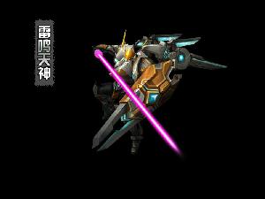 使用“轰雷合体”合体技能,重装组合为远战型终极合体形态“雷鸣天神”,超钛合金制造的机身能让合体机体受到近战攻击时所受伤害按百分比减少,并同时能装备枪和盾牌。
