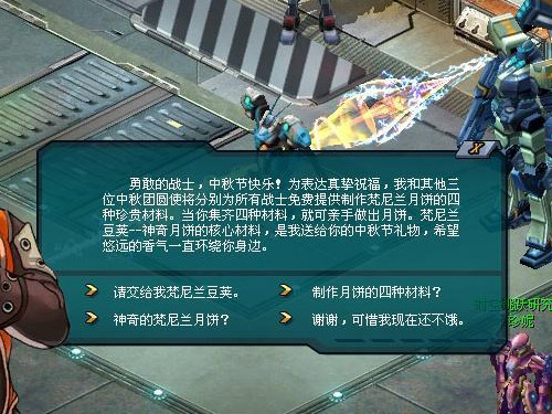 庆幸的是,远道而来的梵特希将带领你制作美味的梵尼兰月饼。他把梵尼兰豆荚作为中秋节礼物送给你,其中蕴藏的神奇力量使梵尼兰月饼具有补充生命值、飞行时间、XP技能的神奇功效。