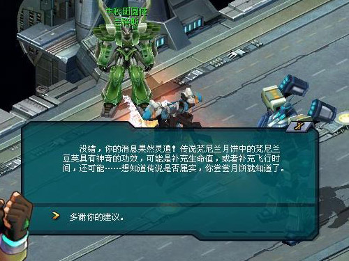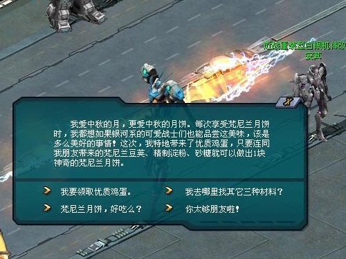 在妮曼的带领下,你又寻到了英俊幽默的兰特斯,他免费赠送给银河系的帅哥靓女们精制淀粉。不仅如此,他还透露重要信息:梵尼兰系列月饼分为3种类型,各有独特功效。“血色浪漫”补充生命值,“我心飞扬”补充飞行时间、“惊天动地”补充XP技能。