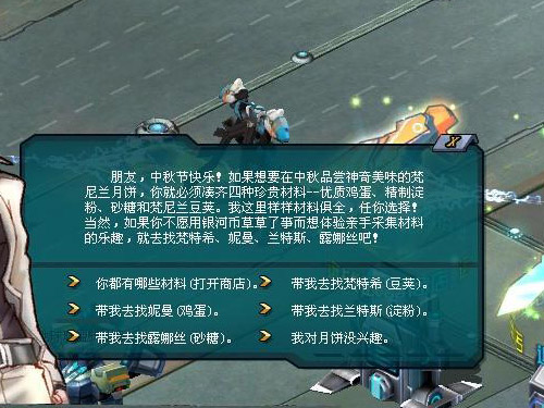 当然,如果你迫不及待地想要尝尝梵尼兰月饼,甚至不惜为此付出一些银河币,那么就直接去找梵尼兰使者吧,他那里有制作梵尼兰月饼的四种材料出售。