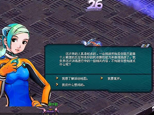当你成功的报名后,度兰卡上尉将带领你进入一个专门为挑战赛而设立的区域。趁着还有点准备时间你可以向卡玛丽中尉来了解下挑战赛的规则。