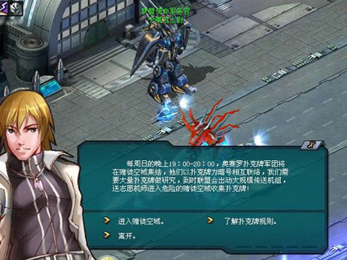 奥赛罗人在赌徒空域集结了大批军队,根据联盟获得的情报,这些军队以扑克牌为暗号,联盟将在每周日的19:00―20:00使用大规模传送机组送志愿机师进入赌徒空域收集扑克牌,希望能破解奥赛罗人的秘密!