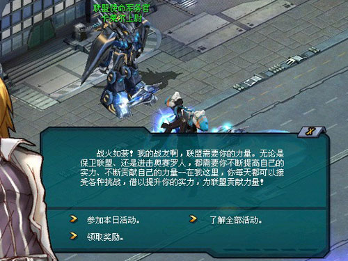 跨越星河的伟业,联盟机师与奥赛罗人的争斗是群星史诗,无数丰功伟绩被载入史书!而今风云再起,联盟使命每天出击,无畏的机师们,来挑战吧,在军务官卡莱尔上尉(钢铁巨舰,458,789)那里,证明你自己超越星河的实力吧,证明你足以担负起联盟的使命!
