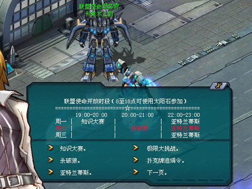 在卡莱尔上尉那里,从周一到周天,你都可以不断挑战自己的实力,让自己誉满星河!每天的联盟使命活动安排如下: