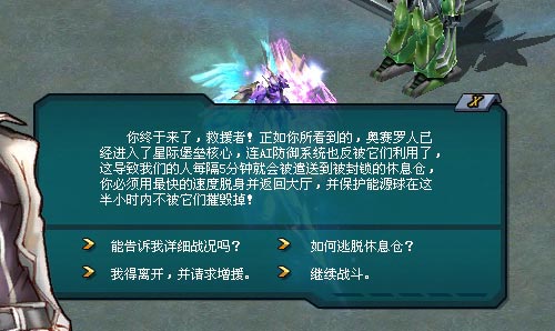 进入星际堡垒,跟指挥官・安迪加莫交谈。你了解到,这里的大厅中心有一颗巨型能源蛋,奥赛罗机体正兵分四路向能源蛋发动袭击,你必须阻止它们的破坏行为。在这场能源风暴中,你唯一的使命是――守住巨型能源球!